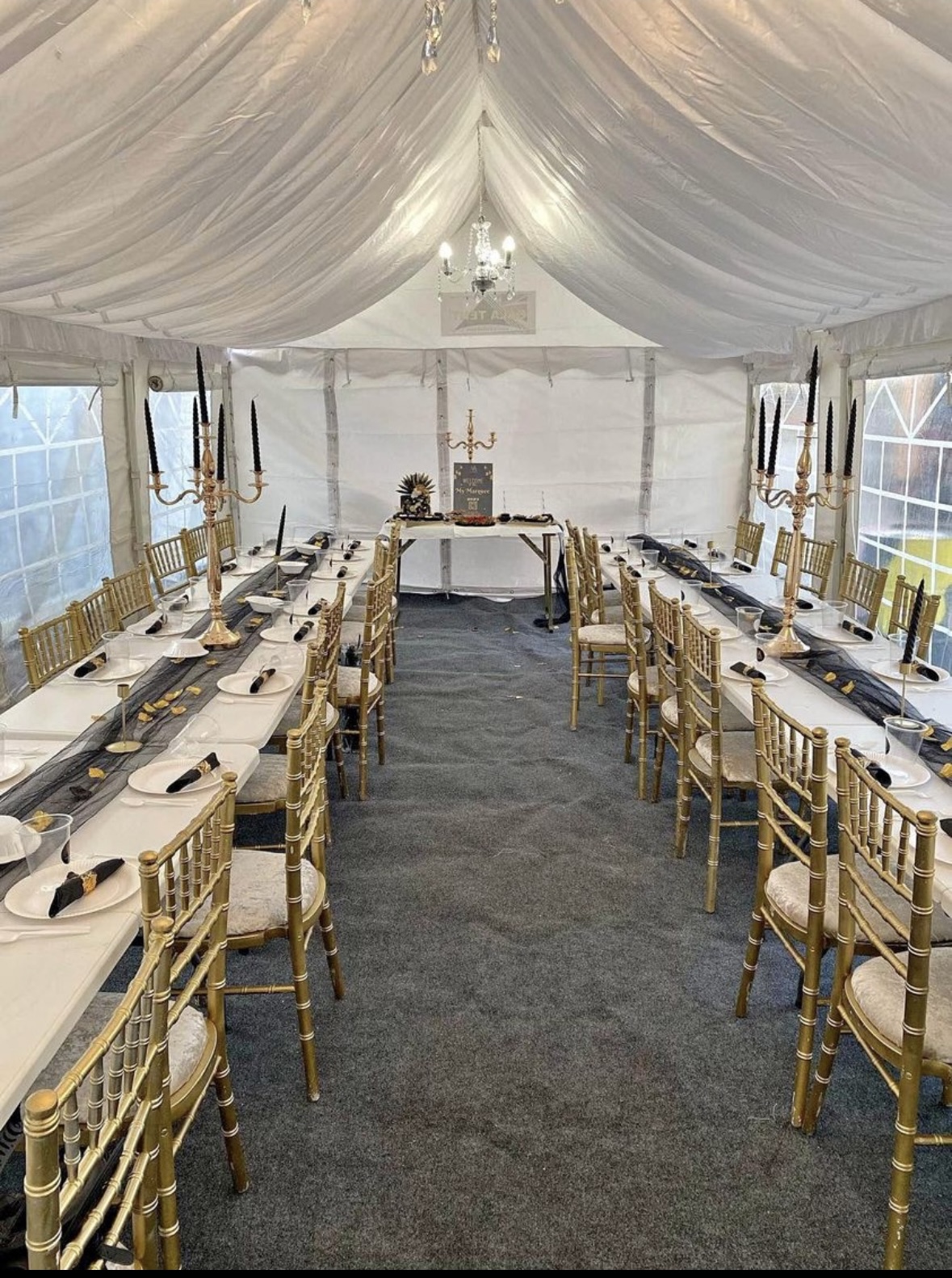 Celebrate your special day in style with our wedding marquee, beautifully decorated with fresh flowers and elegant drapery. The spacious interior allows for customizable seating, dining, and dance areas. Professional delivery, setup, and dismantle services ensure a stress-free experience. Add optional lighting and bespoke décor packages to create a magical wedding atmosphere that your guests will remember forever.